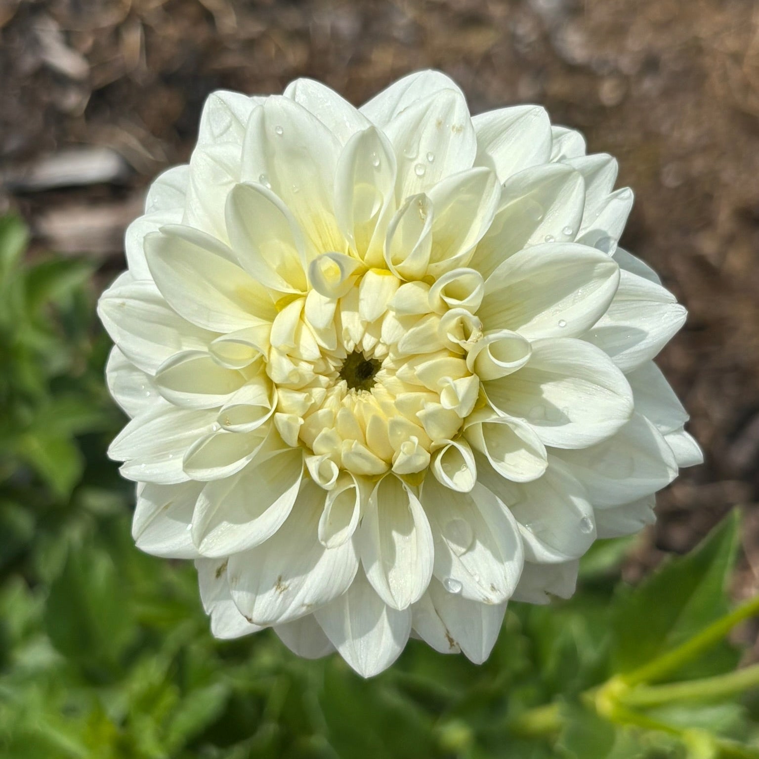 Blizzard is a pristine white decorative dahlia with large, elegant blooms that glow against lush green foliage. The crisp clean petals and strong stems make it an excellent variety for cutting gardens and classic floral arrangements.